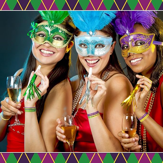 - Wide Application: Mardi Gras party favors silicone bracelets can be widely applied for Mardi Gras parties, carnival party, movie game, birthday party, classroom party and more; Make lasting memories and dress things up carnival style with our themed Mardi Gras wristbands, and make you the focus around people