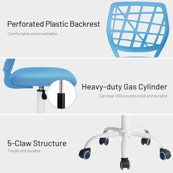 FurnitureR Kids Desk Chair, Small Office Chair Armless Adjsutable Swivel Task Chair with Soft Cushion for Study Kids Teens Child, Blue
