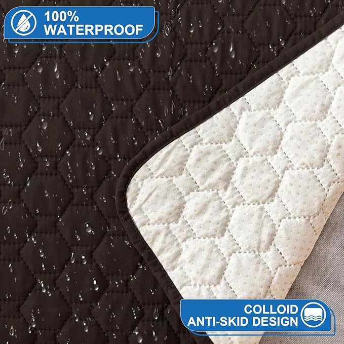 100% Waterproof Recliner Covers for Small recliners, Anti-Slip Recliner Chair Covers with 5 Pockets, Elastic Straps, Washable Recliner Protector for Kids, Pets, Dogs, Chocolate