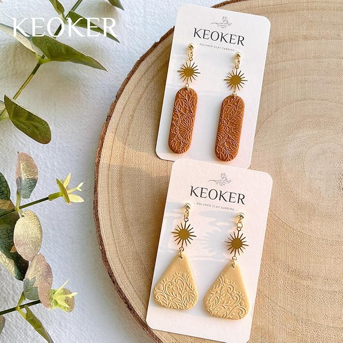 KEOKER Polymer Clay Texture Sheets Set, Clay Earring Molds for Earrings, Works with Boho Polymer Clay Cutter,The Same Effect as Polymer Clay Texture Roller, Boho Texture Sheets for Polymer Clay (1)