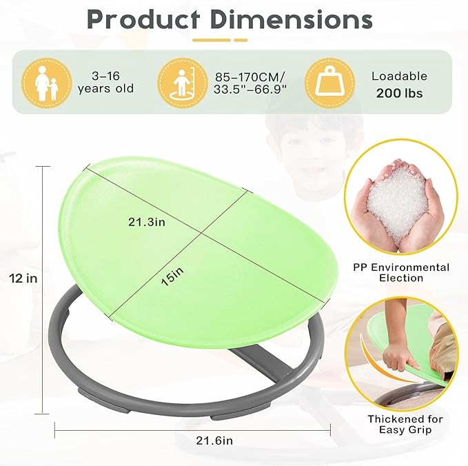 - Variety of Play: Our autism sensory products provide hours of entertainment, allowing children to spin while sitting, kneeling, or lying on their stomachs. It's the autism toy for indoor and outdoor play, ensuring fun for all.