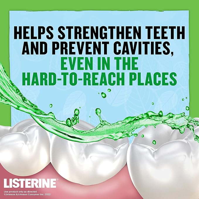 - 500-milliliters of Listerine Smart Rinse Alcohol-Free Mouthwash for Kids in a Mint Shieldflavor to strengthen and protect teeth against cavities when used as part of a regular oral care routine