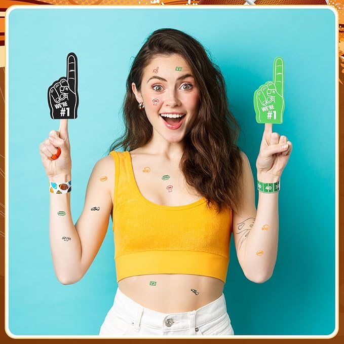 - Football Party Decorations: football charm bracelets and slap bracelets are in line with the theme of football; Besides, these mini stress football, adding more fun to football birthday party celebrations and parties, bringing you and your friend more pleasure; Foam fingers can also bring you more fun when you need to cheer on a race