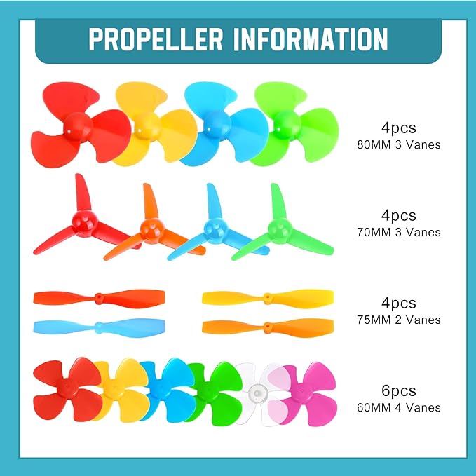 - Versatile Propellers: The circuit kits include a variety of colored vanes propellers in different sizes, allowing for diverse applications and experiments. This versatility enhances the learning experience and encourages creativity