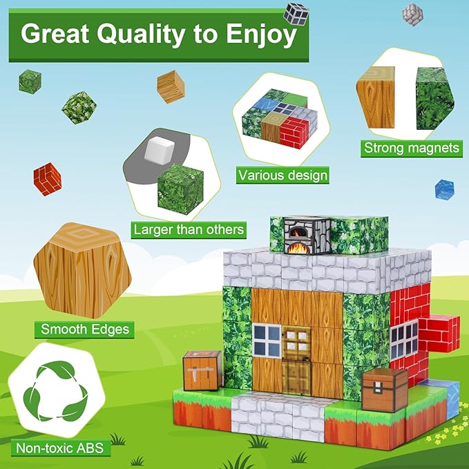 - BUILD, CREATE & UNLEASH IMAGINATION: Our Magnetic Blocks set allows kids to build and create various buildings and landscapes with ease, thanks to the strong magnetic power. Let their imagination run wild!