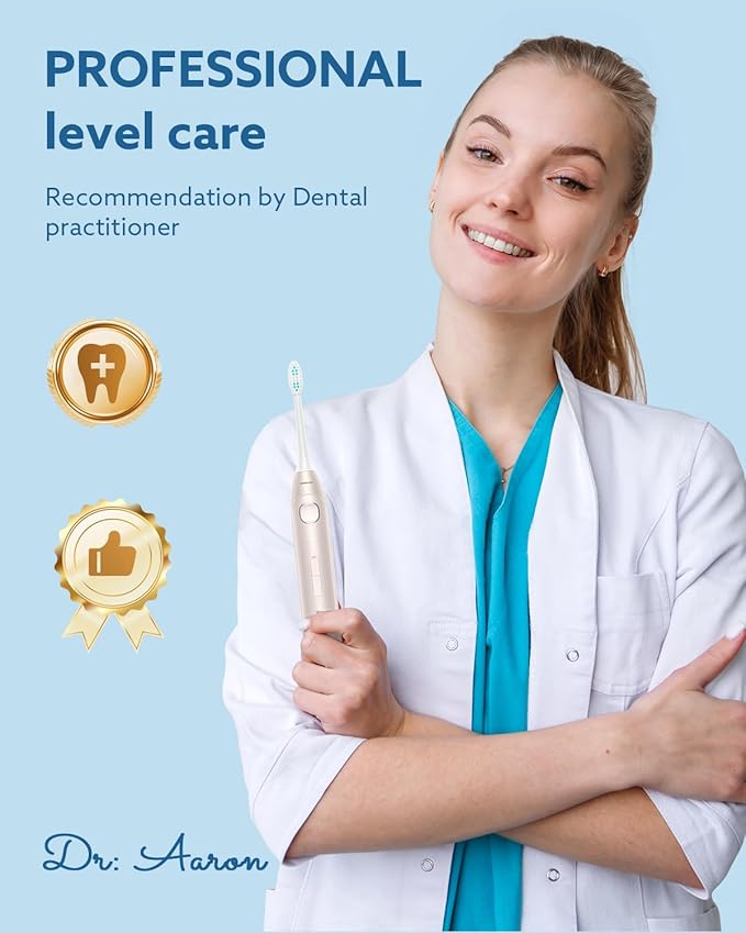 - 40,000 VPM Smart Electric Toothbrush: Up to 40,000 VPM high vibration sonic toothbrush. Remove up to 99.99% of plaque & stains for a deep clean along the gumline & between the teeth.