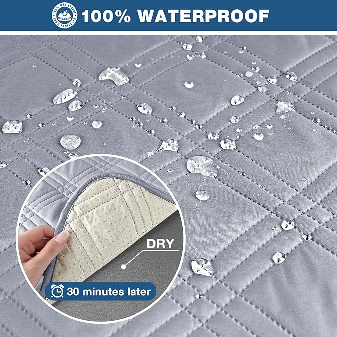 TAOCOCO 100% Waterproof Recliner Couch Cover, Non Slip Split Couch Covers for Reclining Couches with Elastic Straps, Washable Reclining Couch Covers Furniture Protector for Pets(3 Seater, Light Grey)