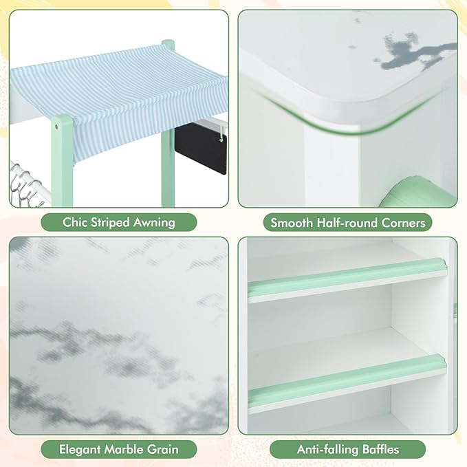- 【Best Gift for Kids】:With all these accessories, this toy kitchen set not only enables kids over 3 years to exert their imagination & creativity, but also improve their hands-on ability & social skills. Overall Dimension: 27.5" x 15.5" x 47"(L x W x H); Height of Counter: 24"