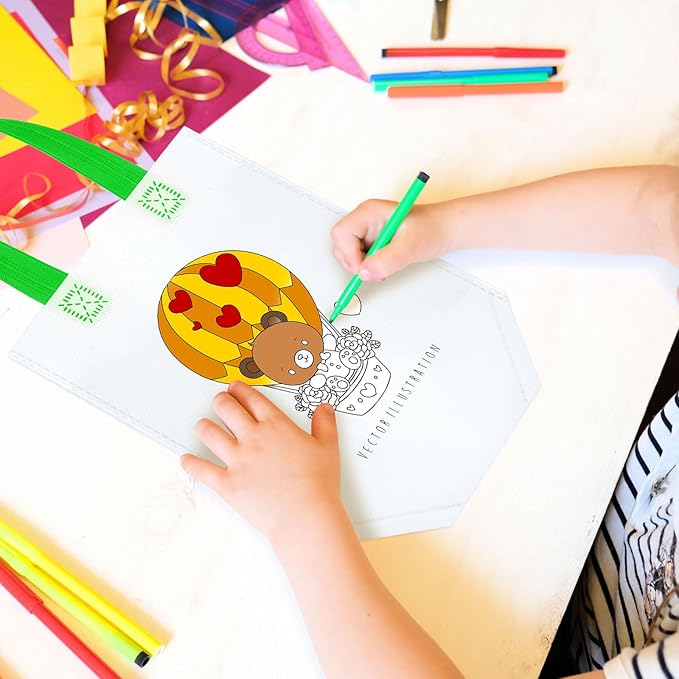 - Proper Size and Handle Design: the coloring goodie bags for kids are approx. 10 x 8 inches/ 25 x 20 cm (L x W), and the handle is approx. 5 inches/ 13 cm long (handle color random), suitable size for storing most small crafts