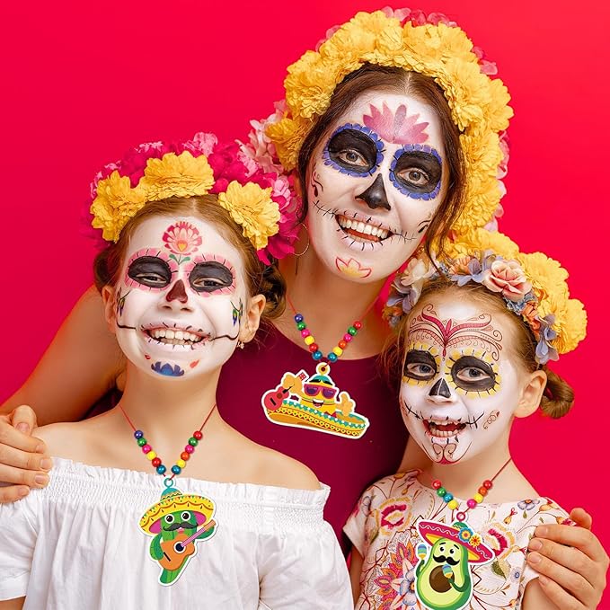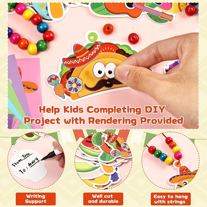 Qyeahkj Mexican Fiesta Craft Kit for Kids - 32 Pack DIY Necklaces, Taco Stickers, Arts Hanging Decoration, Party Supplies Favor, Ideal for Classroom Activities & Gift Exchange