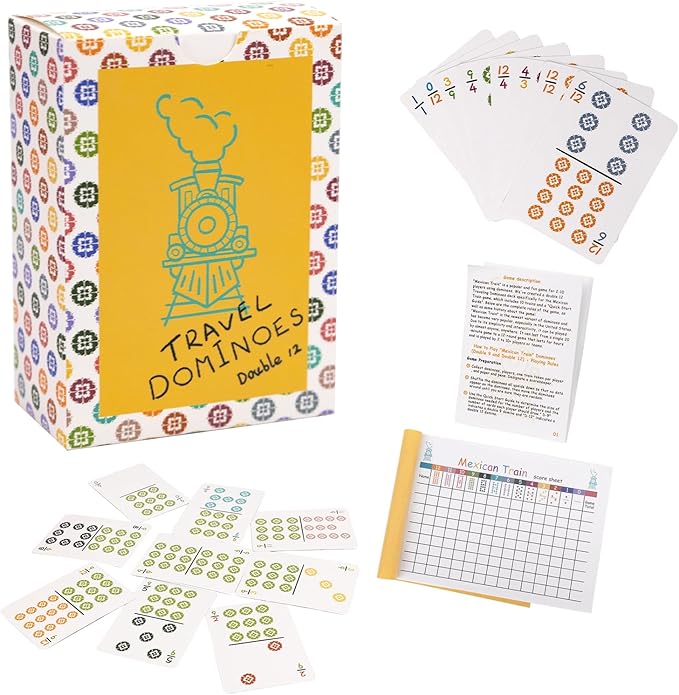 Extguds Mexican Train, Mini Dominoes Game:105 Cards+1 Instruction+1 Scoresheet,Double 12 and Double 9 Dominoes Set,2-10 Players,Dot Dominoes,Travel Dominoes