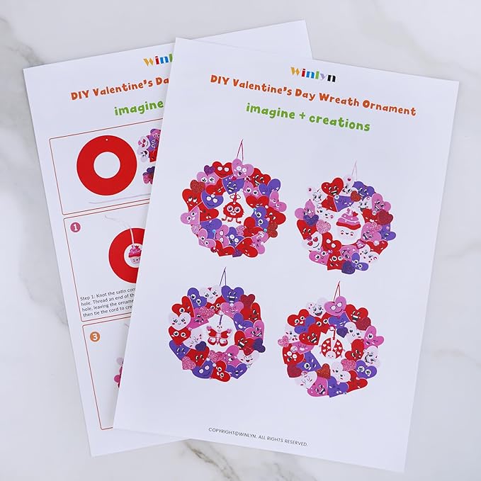 - Easy and Enjoyable: Dive into the fun with these smile heart wreath ornament craft kits—an easy and delightful DIY activity ideal for classrooms or Valentine's Day parties. With instructions and all materials included, kids can express their creativity while crafting decorations. Once completed, these smile heart wreath can be hung on doors, walls, or in kids' bedrooms. They also make heartwarming gifts for friends or serve as delightful party favors and for gift exchanges. Copyright (c) Winlyn.
