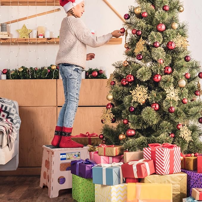 - 【Safe Upgrade Step Stool】ACKO folding stool upgrade designed a safety stop gap feature that allows the foldable stool to prevent being squashed,And unique embossing design provides comfortable to sit sn and Non-Slip.