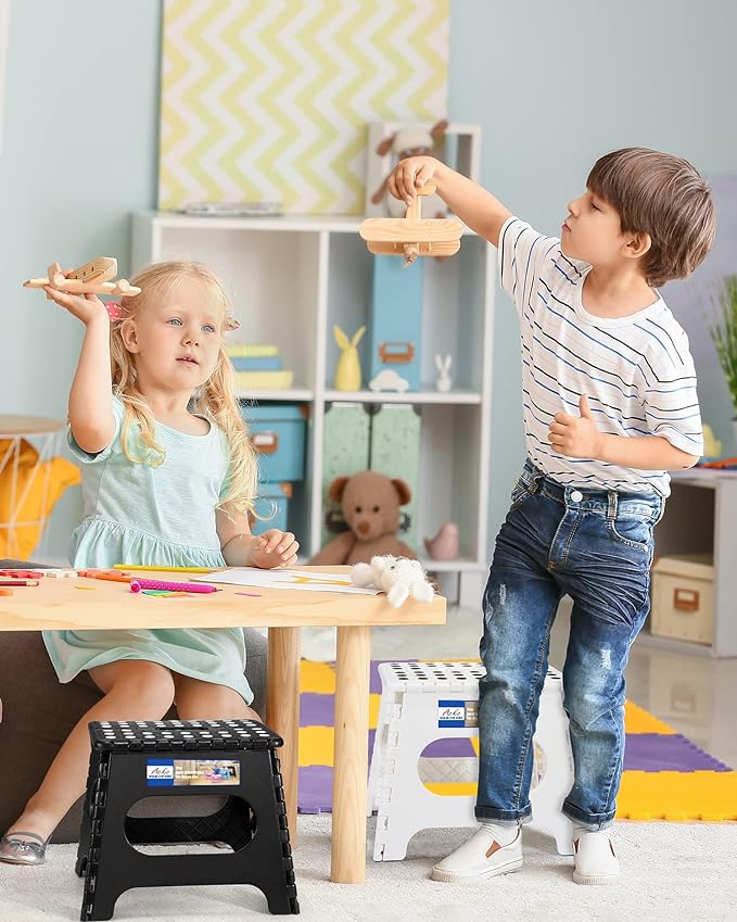 Acko 12pack 11 Inch Folding Step Stool Plastic Foldable Step Stools for Kids, Adults, Kitchen Small Collapsible Fold Up Stepping Stool Black