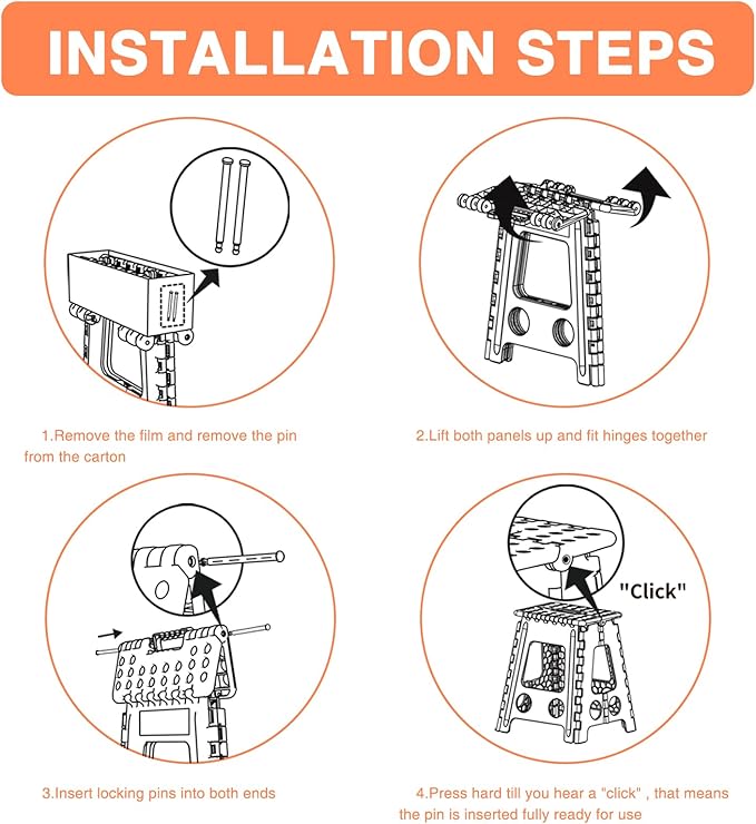 - 【Loads up to 400lbs】This patented step stool with a pin structure provides extra stability. The stool is perfect for anyone looking to gain a little extra height. Tested to hold up to 400 LBS, this folding stool offers great stability even when loaded.