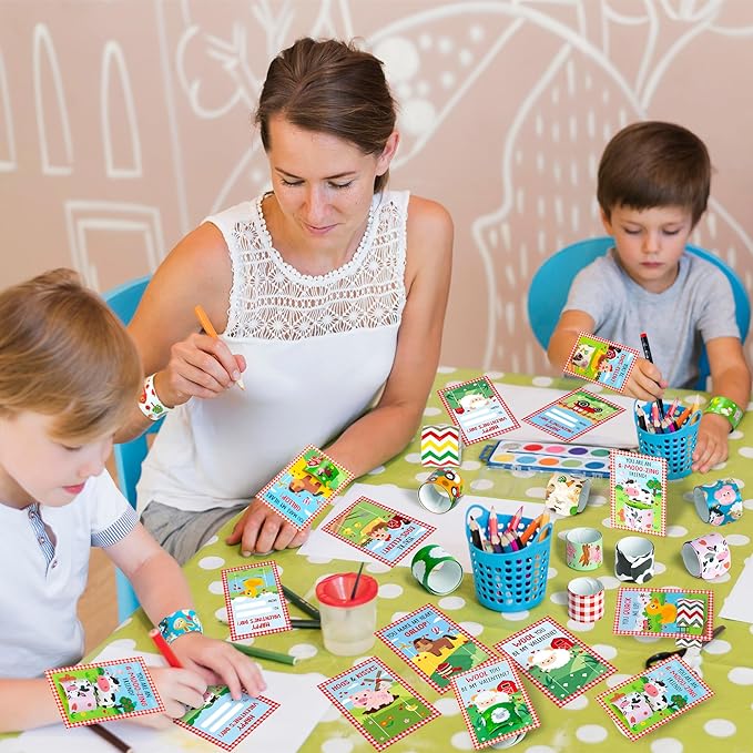 - Perfect Valentine’s Day Gift Set: Includes 28 farm animal cards in 7 designs and 28 slap bracelets in 12 designs. Great for Valentine’s Day gifts, classroom exchanges, and party decorations.