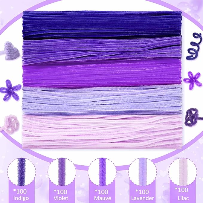 - Ample Quantity and Multicolor Variety: it comes with a package of 500 pipe cleaners in different shades of purple; Each shade comprises of 100 pieces, providing a diverse range for your crafting and decorating needs; The multicolor variety makes it attractive and appealing
