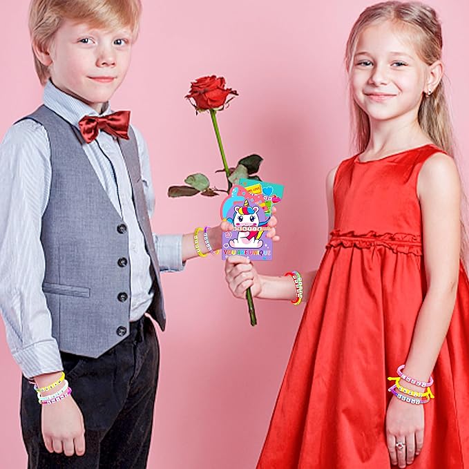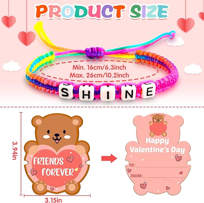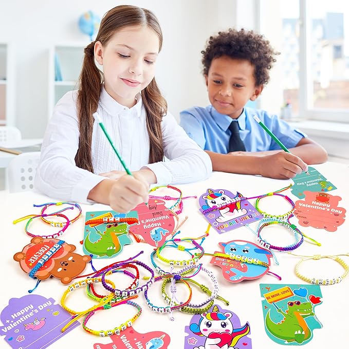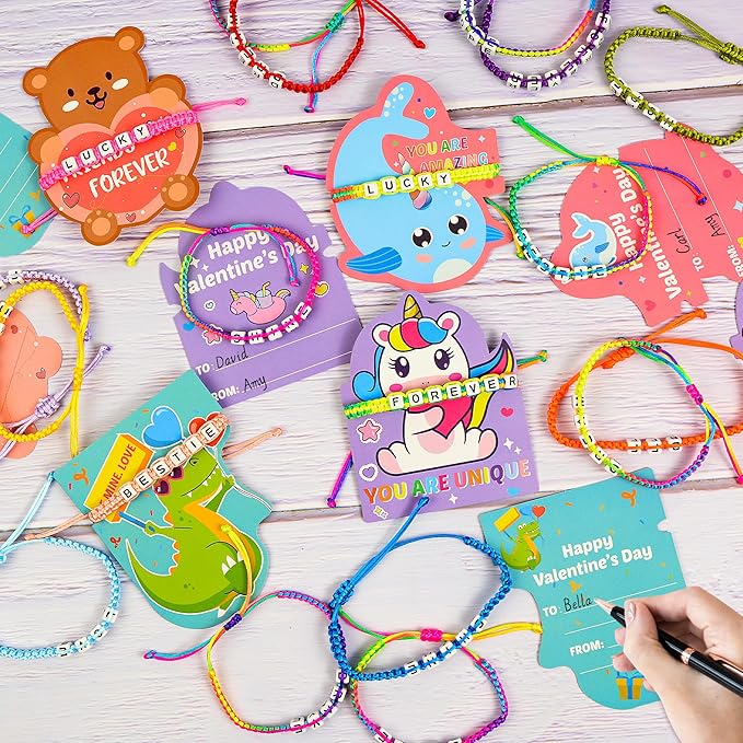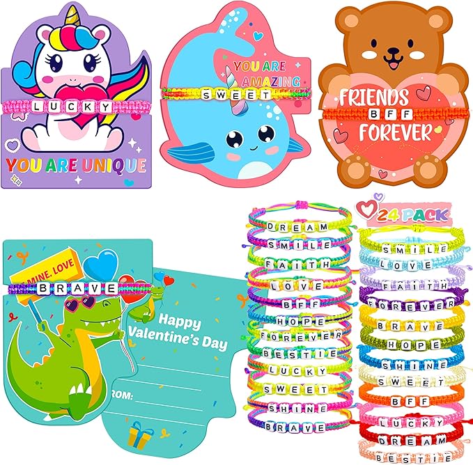 - Valentines Day Gifts for Kids -- You will get 24 pieces of friendship bracelets with kids valentines day cards. Perfect for kids' classroom valentine exchange, preschool or elementary school parties, or any valentine party!