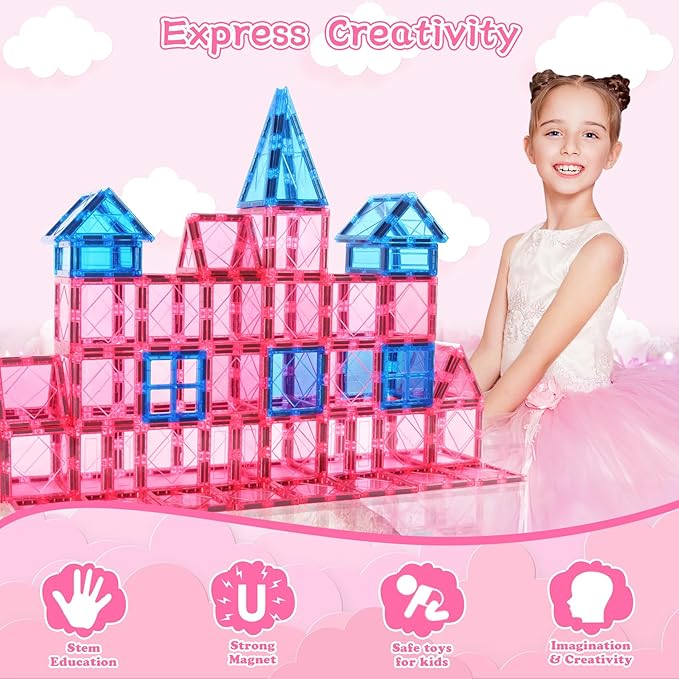 - STRONG MAGNETS MORE STABLE:Our kids magnetic tiles building blocks with larger and stronger magnets inside ensure a secure connection,allowing the magnetiles construction of more intricate shapes without collapsing,bringing your kids age 3-4 3-5 5-6 a better play experience.Let children create all sorts of imaginative masterpieces.