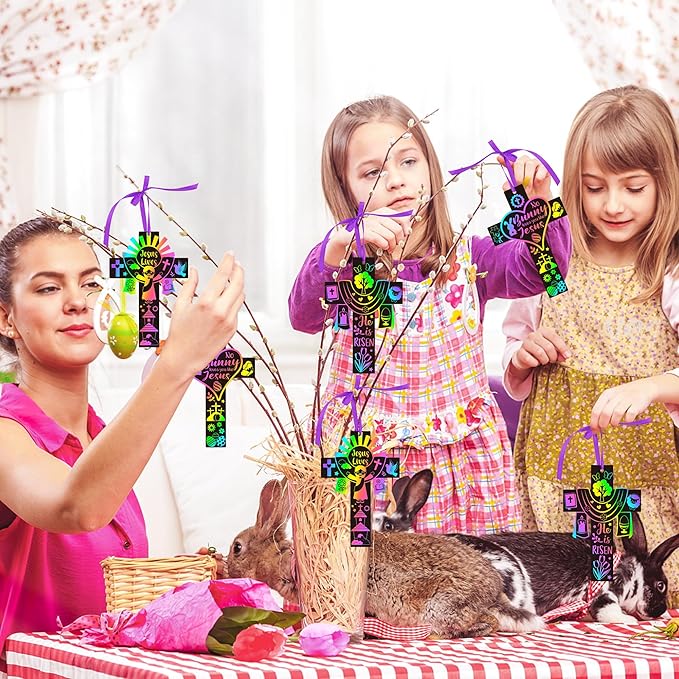 WATINC 60pcs Cross Scratch Cards, Resurrection Cross Magic Scratch Paper DIY Art Ornaments, Color Crafts Kit for Kids, Christian Religious Easter Sunday School Classroom Supplies Decorations