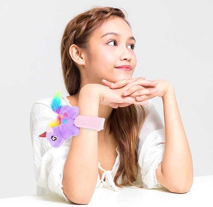 Abaodam Animal Slap Bracelet Unicorn Slap Bracelet Plush Stuffed Animal Hugger Snap Wrist Band for Kids Birthday Party