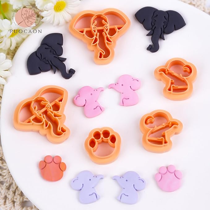 - Delicate Polymer Clay Cutters: It's an elephant theme clay cutters set. You can use these clay cutters making polymer clay earrings, necklace, brooch, pin etc. They are packed in a small plastic box, easy for storage.