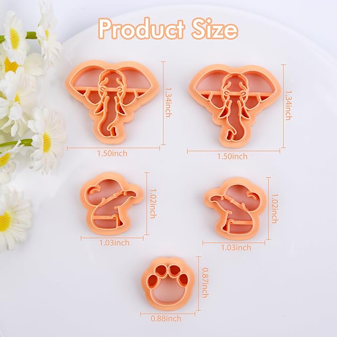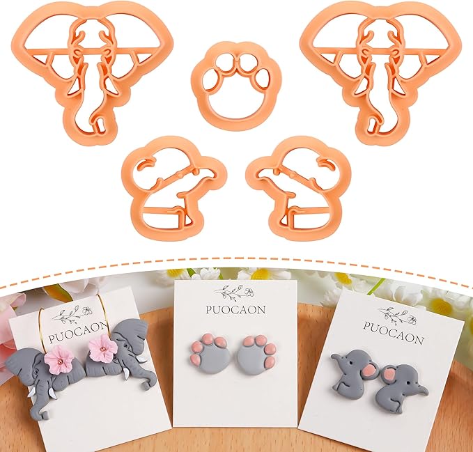 Puocaon Elephant Polymer Clay Cutters 5 Pcs, Mirrored Shape Baby Elephant Clay Cutters for Earrings, Paw Clay Earring Cutters