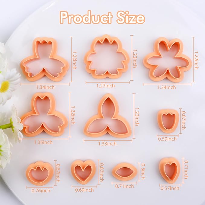 - Delicate Polymer Clay Cutters: It's a flower petal theme clay cutters set. You can use these clay cutters making polymer clay earrings, necklace, brooch, pin etc. They are packed in a small plastic box, easy for storage.
