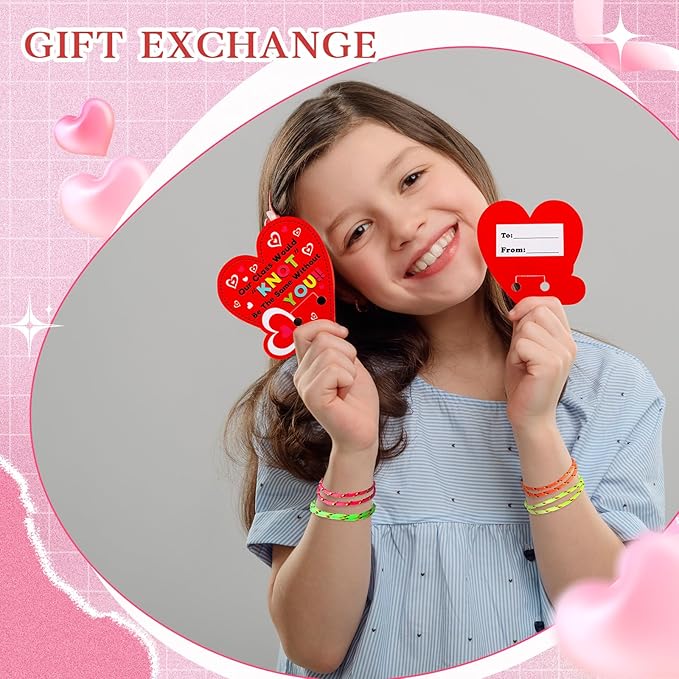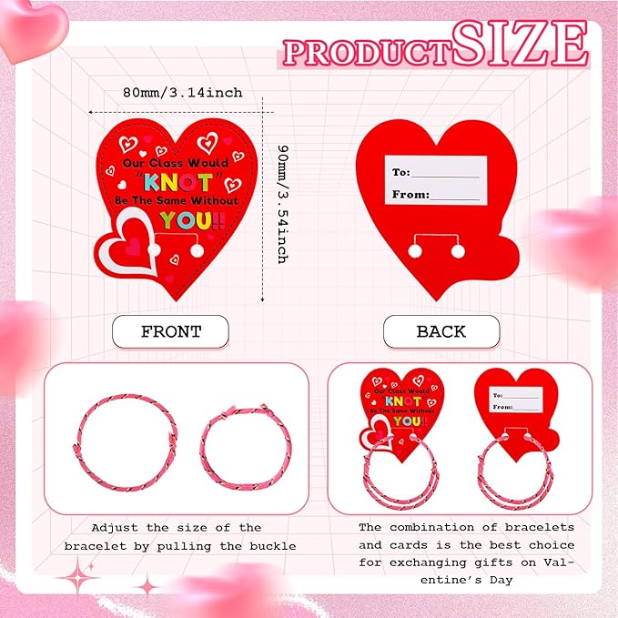 - Quality Material: our Valentine's Day cards are made of 300g double copper paper, printing with heart designs and sweet words; And the Valentine's Day friendship bracelets are made of quality rope, which is firm and reliable to use, not easy to fade, tear or break, smooth and comfortable to wear without scratching your hands