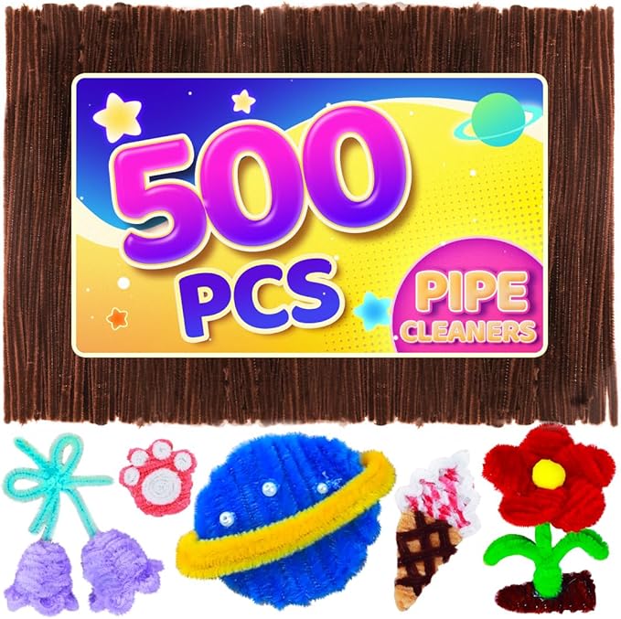 Eppingwin 500pcs Pipe Cleaners, Dark Coffee Pipe Cleaners Craft Supplies, Brown Chenille Stems for DIY Arts Crafts Project(Brown)