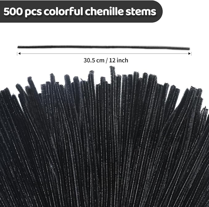 Eppingwin 500pcs Pipe Cleaners, Black Pipe Cleaners Craft Supplies,Chenille Stems for DIY Arts Crafts Project(Black)