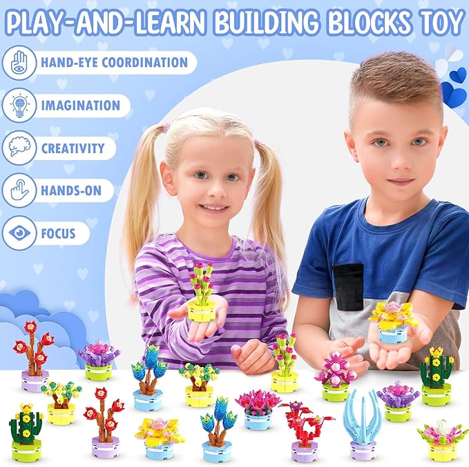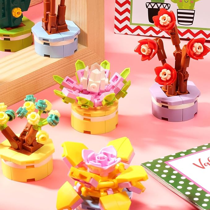 - PLAY AND LEARN VALENTINE TOY : Qinline building blocks party favors adopt unique 12 different types of succulents building blocks, not only allows children cultivate hands-on coordination, imagination, creativity, concentration & develop their logical thinking skills. Fun while fostering their creativity and STEM skills, also will enjoy the building process with their classmates, friends or family via this interactive toys. The fun of the a building blocks lasts well past Valentine’s Day!