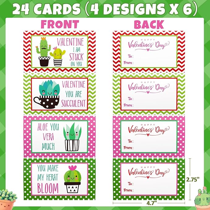- 4 DESIGNS VALENTINES GIFTS CARDS PARTY TREATS: There are 24 pack 4.7 X 2.75" gift cards(4 designs X 6) in this kids gifts sets for valentines exchange, including your most sincere sweet pun blessings. They all already packaged and stapled to the card, no assembly required and just need to fill the "TO" and "FROM" , then the valentines gifts is finished, this is easy job for boy girl even for toddler, They are perfect for classroom Valentine's Day exchanges for all age kiddos.