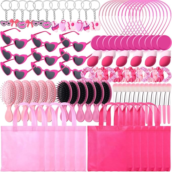 • Comprehensive Party Kit: this kit contains 108 pcs items, including 12 keychains, 12 small compact mirrors, 12 makeup brushes, 12 sponges, 12 party favor bag for girls, 12 heart sunglasses, 12 hair brushes, 12 headbands, and 12 hair ties; This complete package serves as a gift catering for all your party favor needs for birthday party, slumber party, or princess theme party