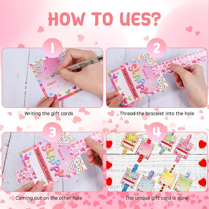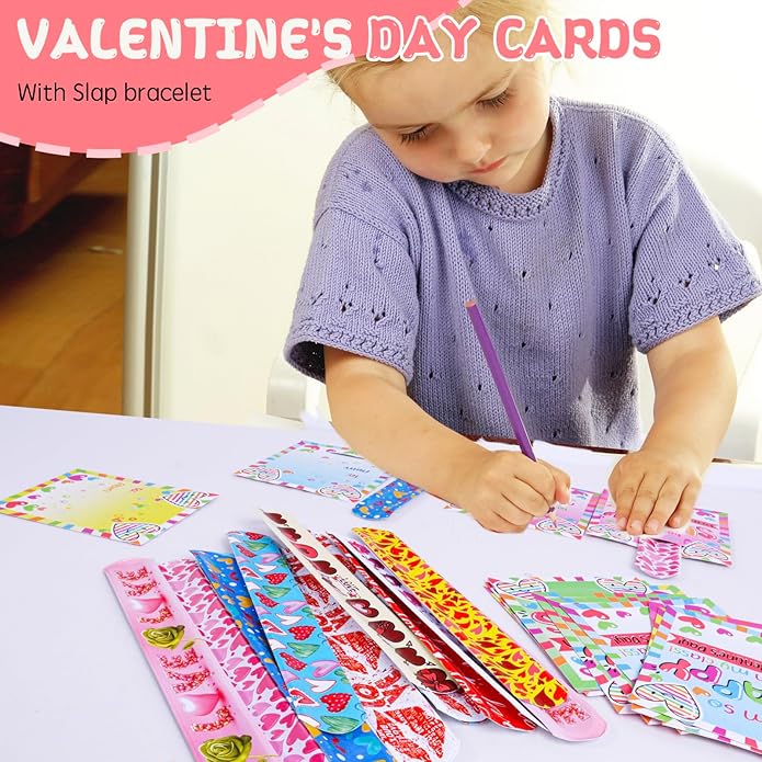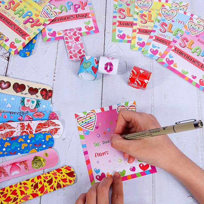 - Package includes:Our Valentines day gifts includes 24 gift cards, 24 Valentines Day Slap Bracelets (12 designs) with Slap Bracelets,These Valentine's Day cards are suitable for kids' Valentines Day gifts, classroom gift exchanges, class activities, classroom rewards, elementary classroom parties, Valentine party favors, etc.