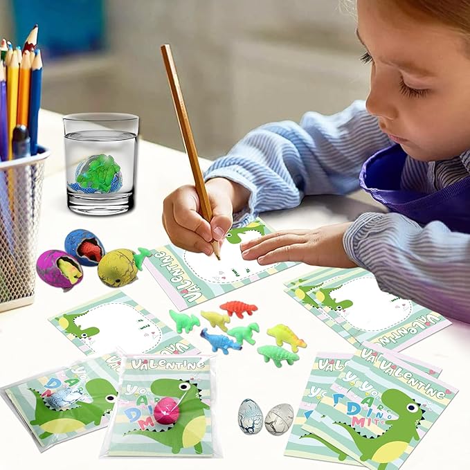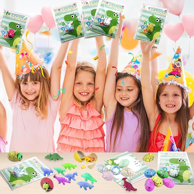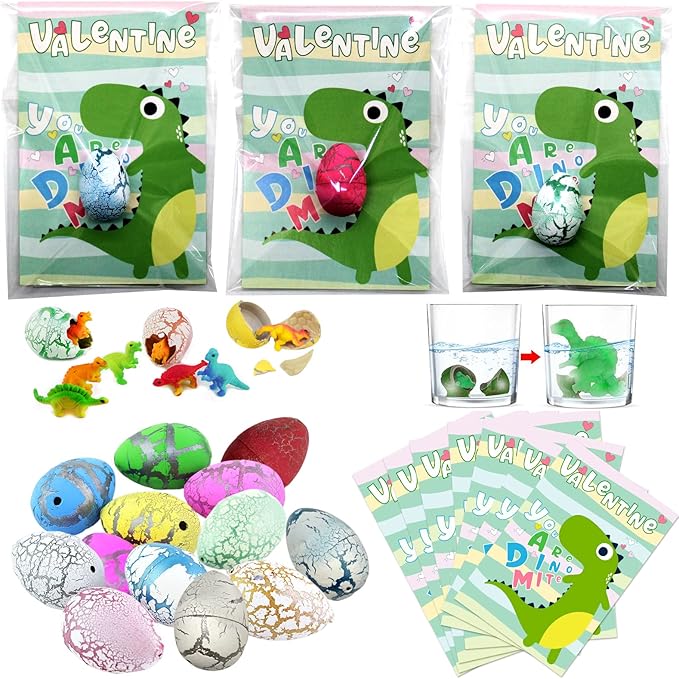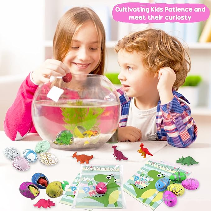 - 【Awesome Dinosaur Hatching Eggs Set】These bulk hatching dinosaur eggs are perfect for valentines day gift, valentine swap cards, party favors, birthday parties, classroom prize, party supplies, school class preschool rewards, stocking stuffers, goody bags. Awesome alternative to candy/treats!