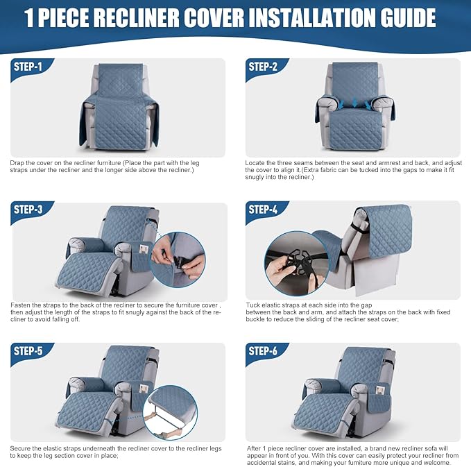- TRIPLE STRAP DESIGN REDUCES MOVEMENT: This recliner chair slipcovers is designed with triple straps for the headrest, lumbar, and footrest of the recliner to keep it in place better, no need to worry about recliner cover slipping off; Reversible design keeps your recliner chair safe and reduces wear