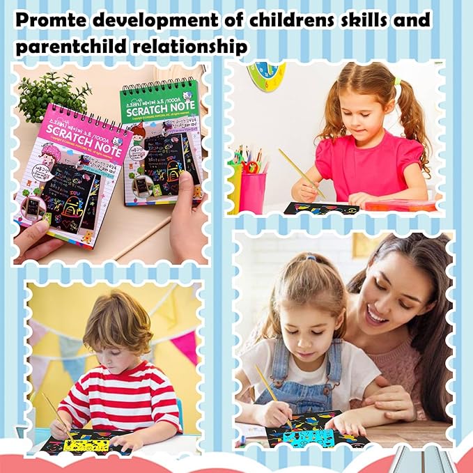 - High-Quality Material: This scratch note pad is made of high-quality thick paper, coated with black coating, safe, odorless, thick and not easy to tear. Children can enjoy scratch art by spending time playing, thinking, testing and preparing their masterpieces