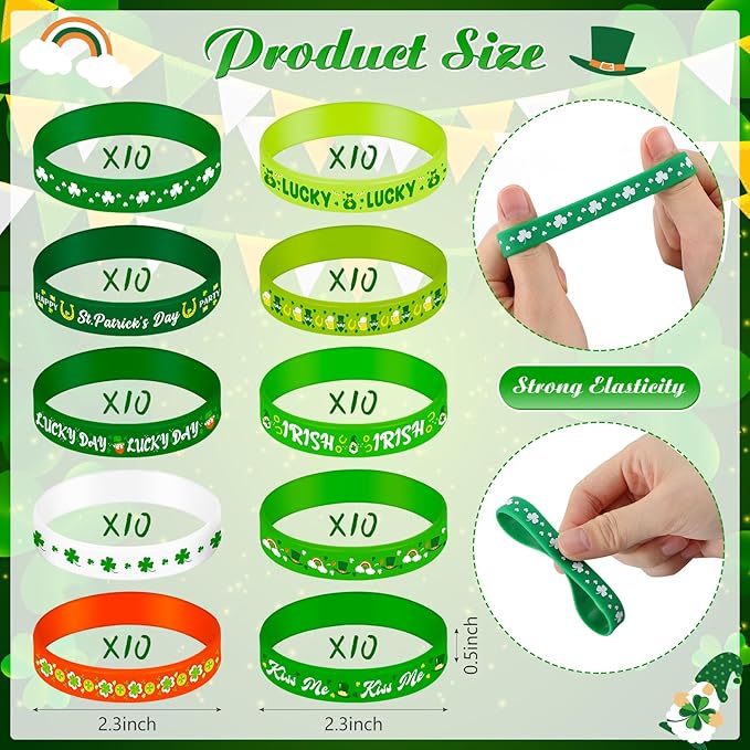 - Leave Indelible Memories: our St. Patrick's Day wristbands measure about 0.47 x 7.95 inches/ 1.2 x 20.2 cm, with elasticity and flexibility, designed for most ones in different ages, widely applicable to St. Patrick's Day parties