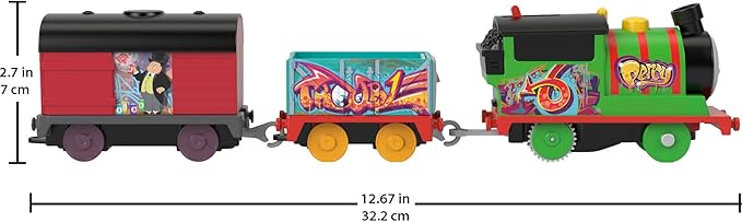Thomas & Friends Motorized Toy Train Graffiti Percy Battery-Powered Engine with 2 Cargo Cars for Pretend Play Preschool Kids Ages 3+ Years