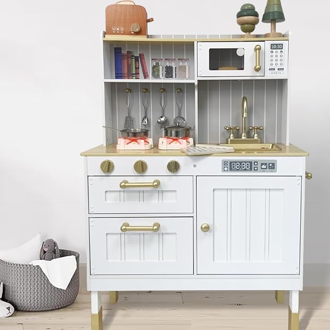 - šGeat gift- Not only provides fun playtime for young children, but is also important for education. The perfect play kitchen for 1+ year olds is ideal for creative role play toy and the perfect birthday gift for your daughter and son.