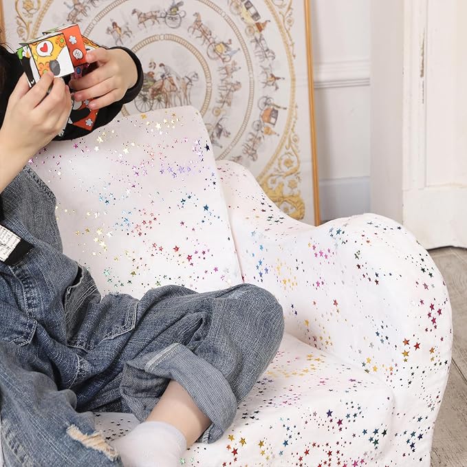 Shiny Star Toddler Couch, 2-in-1 Toddler Soft Couch Fold Out with Star Pillow, Convertible Sofa to Lounger for Girls and Boys, 1-Seat