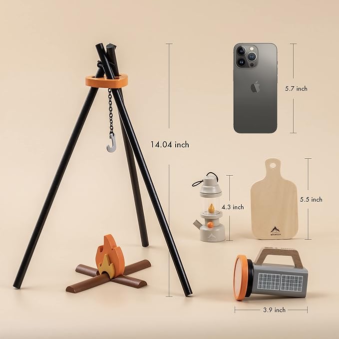 - ⛺Safe and Durable Materials: Crafted from durable wood and coated with non-toxic water paint, this camping playset prioritizes safety. The meticulous construction ensures a smooth finish without any burrs or splinters, making it a perfect gift for your little adventurers on birthdays, Christmas, and other festivals.