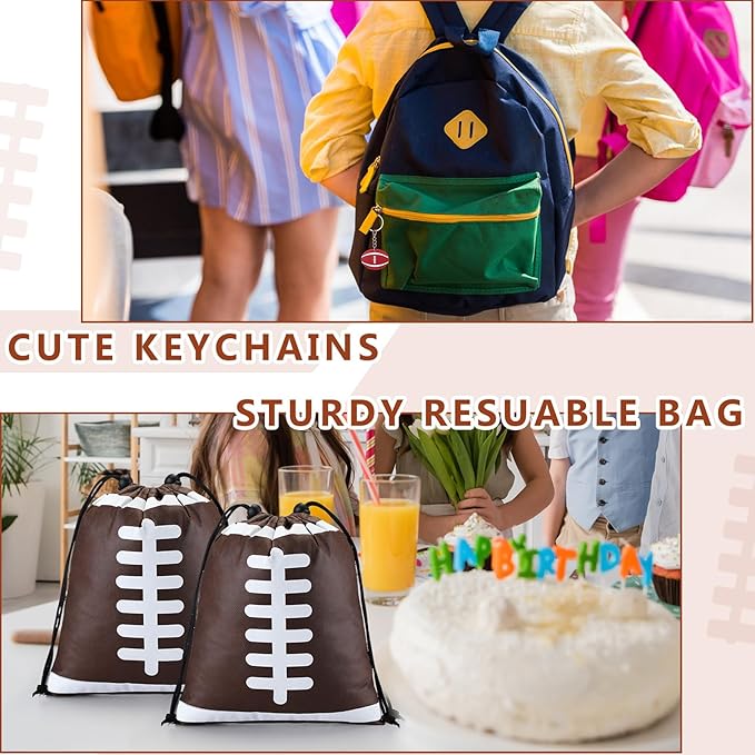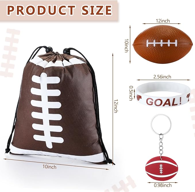 Nuogo 48 Pcs Football Party Favors Supplies Include 12 Pcs Football Goodie Bags 12 Pcs Football Bracelets 12 Pcs Football Stress Balls 12 Pcs Mini Football Keychain Birthday School Sport