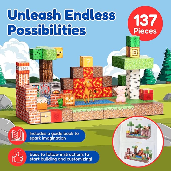 - PERFECT GIFT FOR CREATIVE MINDS – Looking for the ultimate STEM toy that combines Montessori principles and Minecraft-inspired play? This magnetic cube set is the ideal gift for birthdays, holidays, or any occasion to inspire young builders.