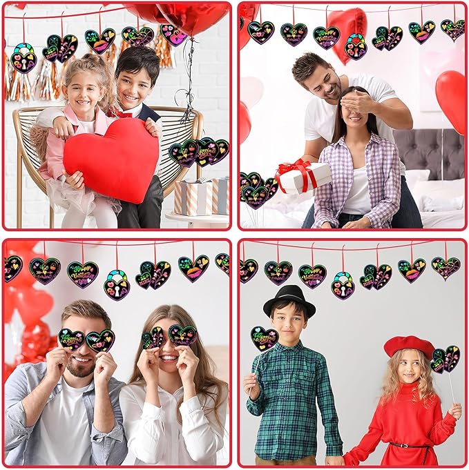 - Fun Valentine Crafts: The wooden stick can easily scrape off the black film, revealing beautiful rainbow colors. Each heart card provides enough space for children to draw their favorite words, patterns and other creative contents as they wish. Very helpful to stimulate children's creativity and imagination, allowing them to express their inner world