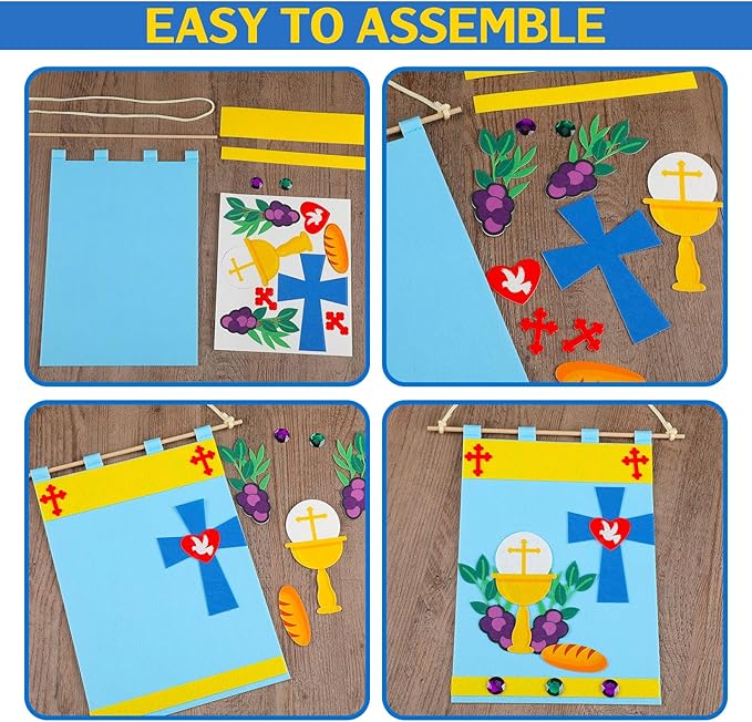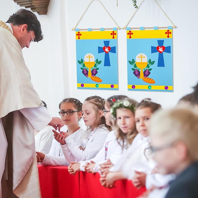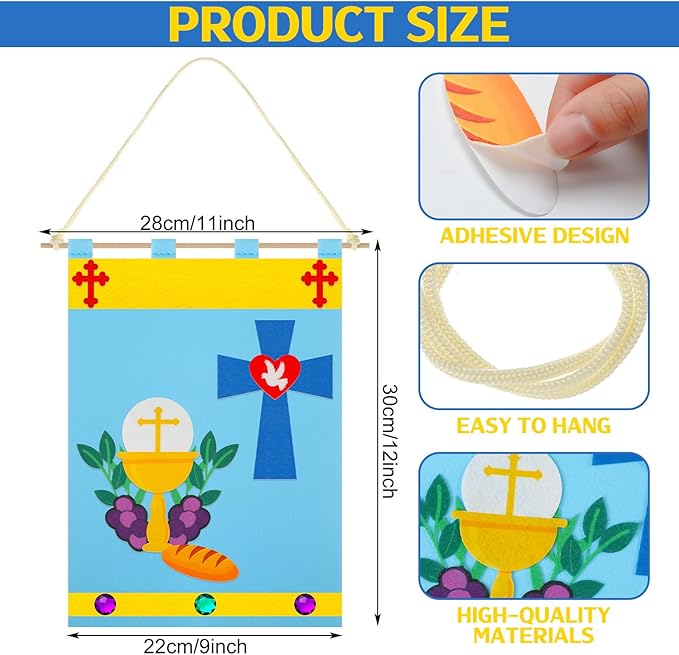 - Quality Material and Ample Content: enjoy a wholesome and enriching craft experience with our 1st communion banner kit made with quality felt material that delivers a comfortable and durable user experience; The package includes 12 first communion banner kits offering you an abundant supply for multiple uses