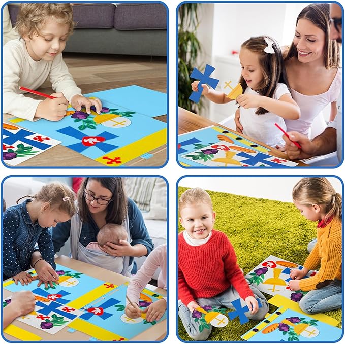 - Colorful and Distinctive Visual Appeal: every banner in our communion banner kit features a colorful and exquisite design that stands out, including cross, grape, bread and other patterns, making it a captivating visual; Each piece carries an intrinsic sense of wonder and spiritual meaning, making it an ideal activity for a first communion class