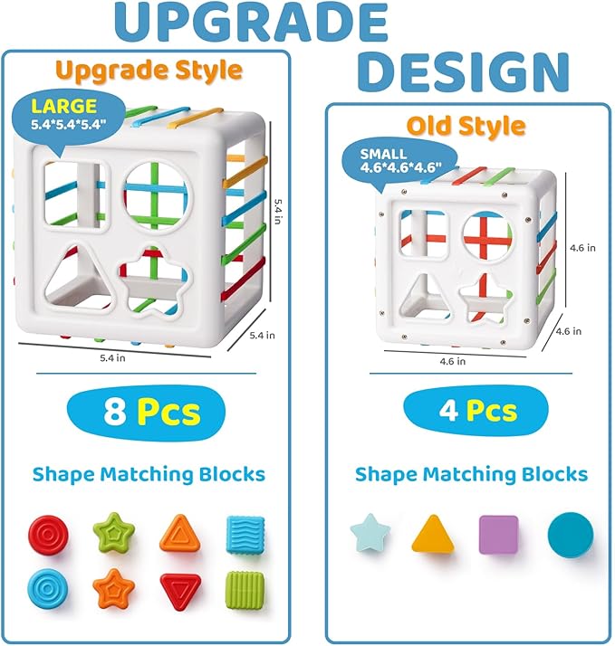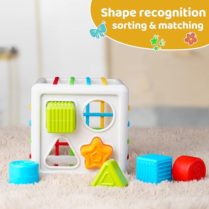 LiKee Montessori Toys for 1+ Years Old, Shape Sorter Baby Toys for Girls Boys Birthday, Colorful 1 2 3 Years Infant Toddler Toy, Learning & Fine Motor Skills 18+ Months (Large Cube)