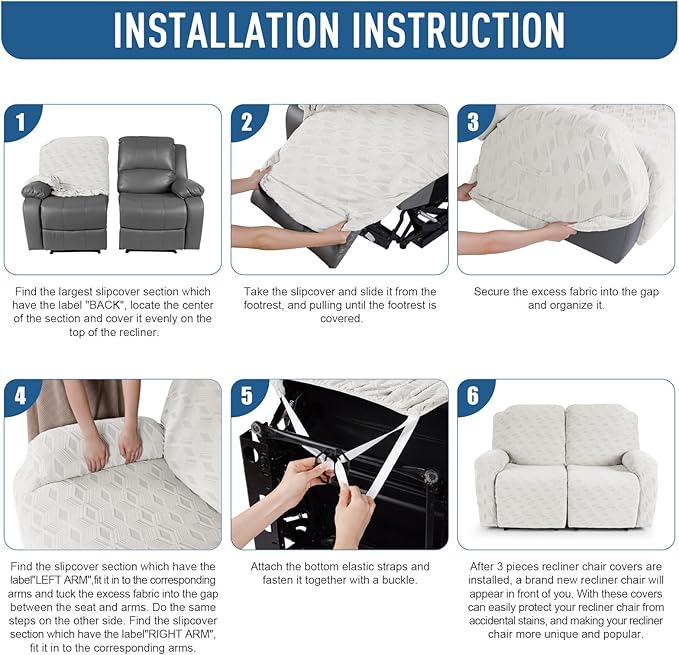 - KID AND PET FRIENDLY: Ideal for homes with children and pets, the reclining couch covers feature bottom elastic and anti-slip buckles to keep them in place, providing an extra layer of protection for your furniture
